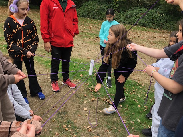 The next day was bursting with energy and teamwork magic! The children threw themselves into a series of thrilling team-building challenges like moving tyres to different poles, balancing balls on wobbly poles and shuffling carefully along a narrow bench to line up by birthday or name order. One of the highlights was the ‘scout scarf challenge’, where teams had to think creatively to pass the scarf across an ever-widening river!