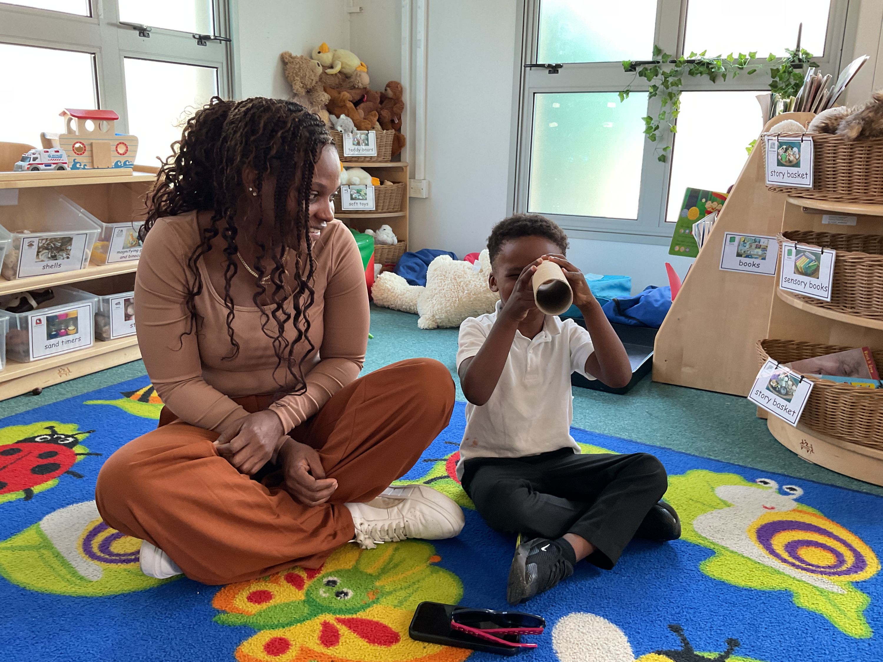 We place a high emphasis on providing a language rich environment and value the importance of the role the adult has in providing this. The quality interactions adults have with children throughout the day, developing back and forth conversations and echoing back what children say with new vocabulary, are vital. Adults support children in making connections by showing genuine interest, offering encouragement, clarifying ideas and asking open questions to move their learning on. We know that this “in the moment” teaching builds children’s language effectively and supports progress for all.