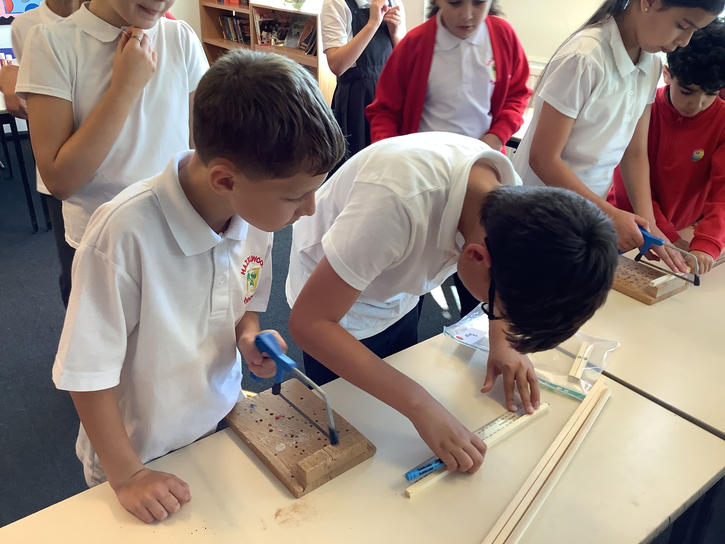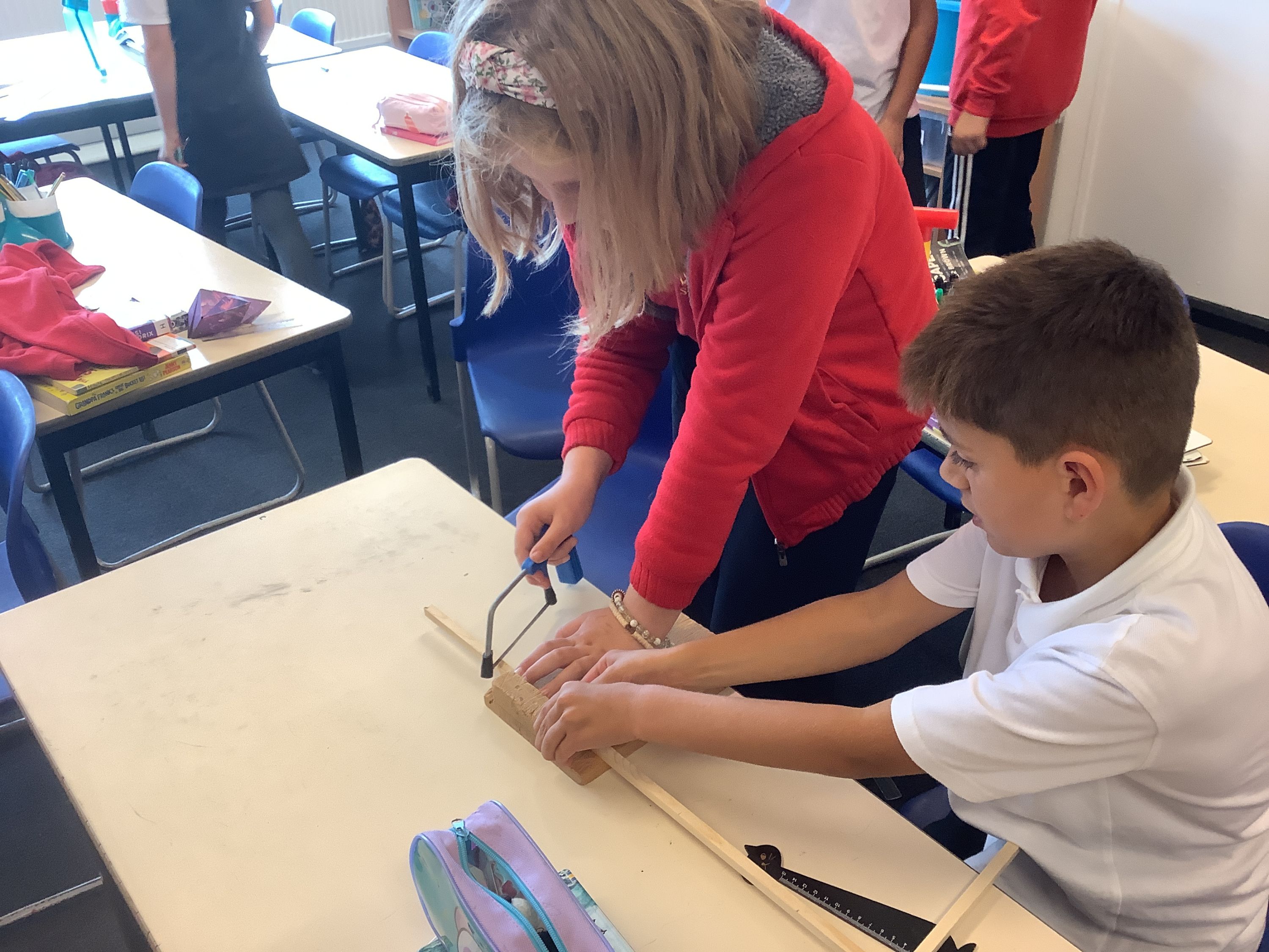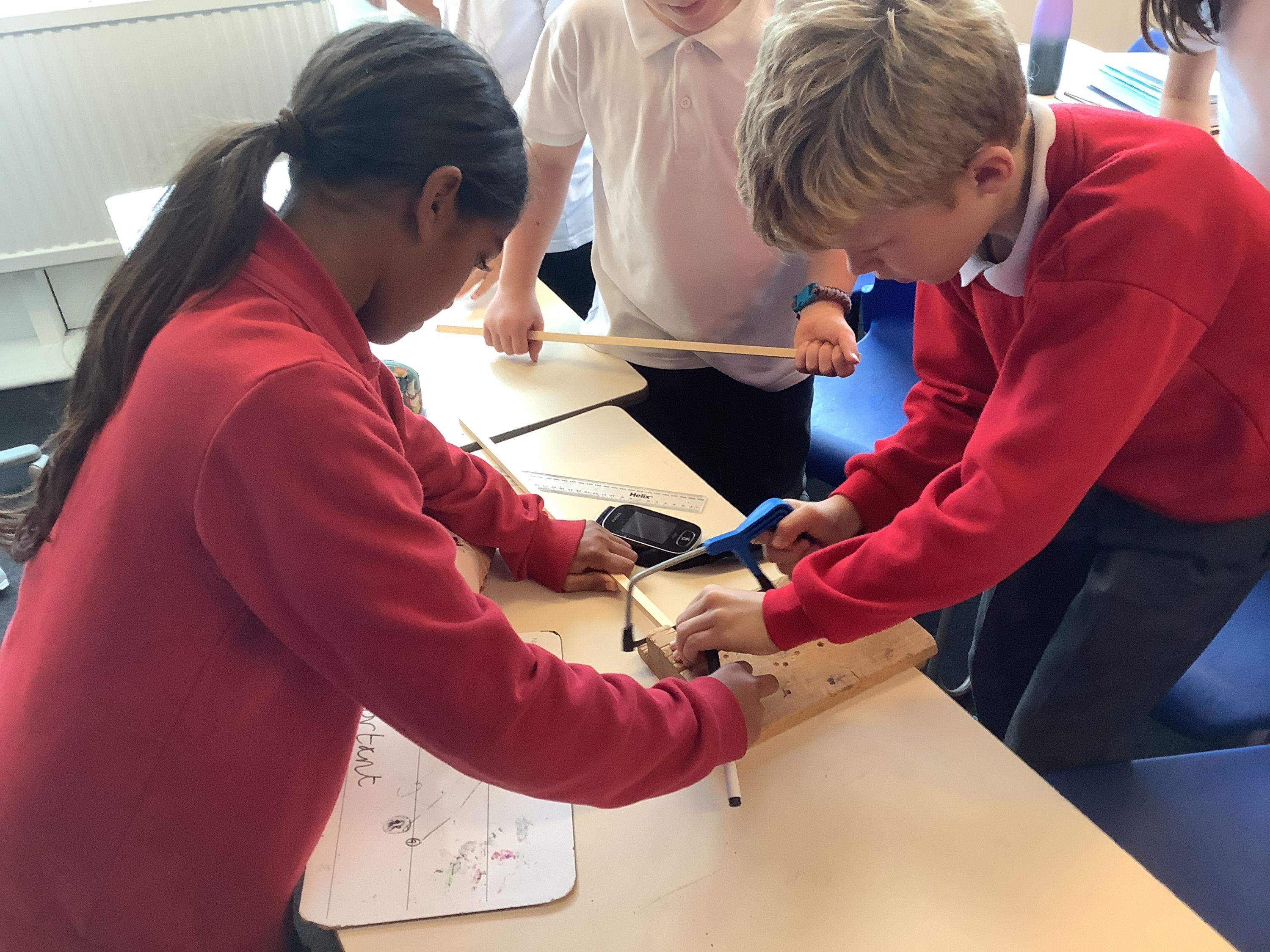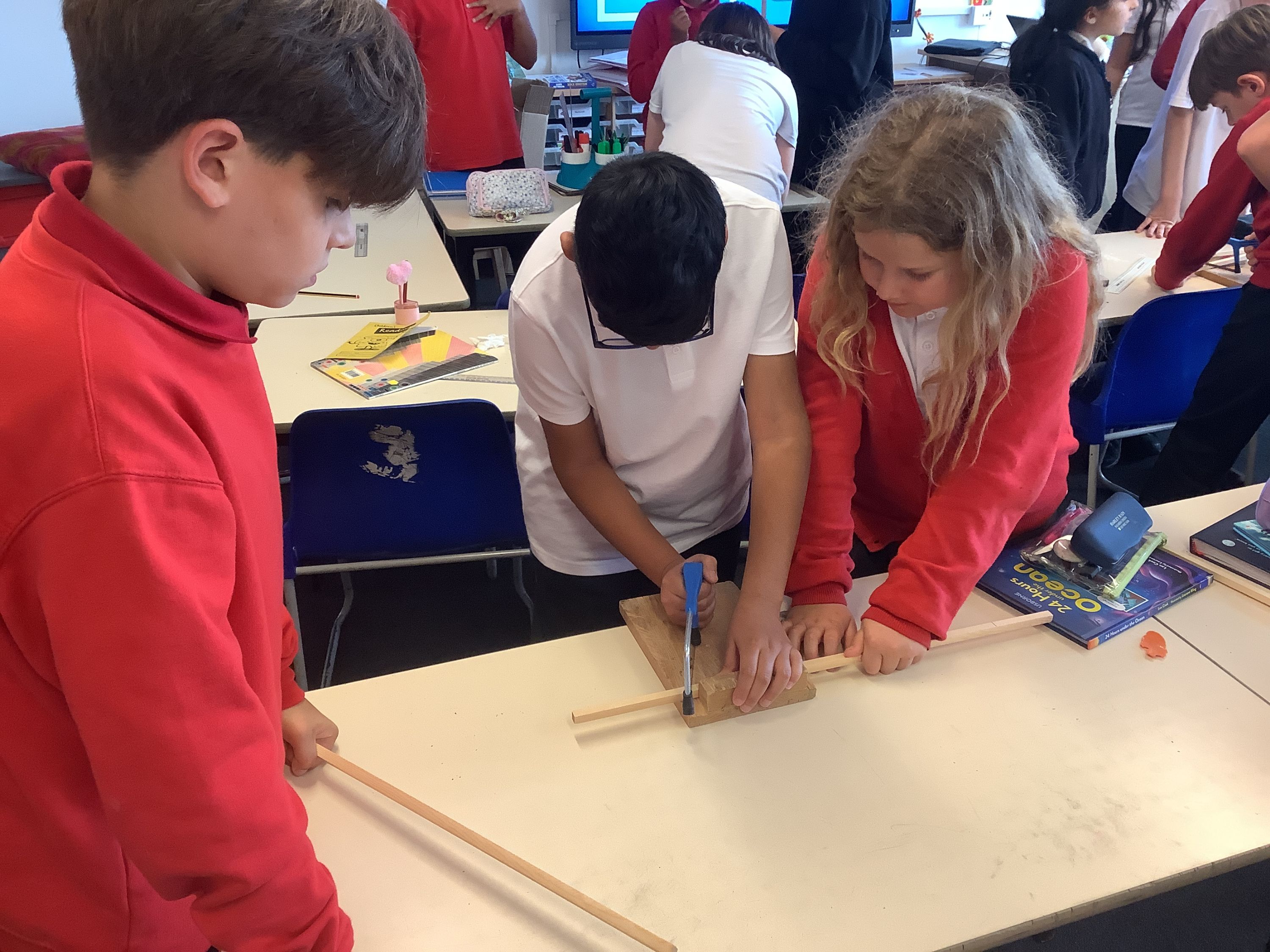 In Design & Technology, the children have started an exciting project to make automaton toys for a local museum. So far, they have carefully measured and cut wooden rods to build strong frames for their boxes, following a detailed design brief and specifications. They have also learnt to use tools like hacksaws and hot glue guns safely. Next, they will add the cam mechanisms and design the outside of their boxes to turn them into fully working, creative toys. It’s a hands-on project that’s challenging, fun and full of anticipation as the children see their ideas take shape!