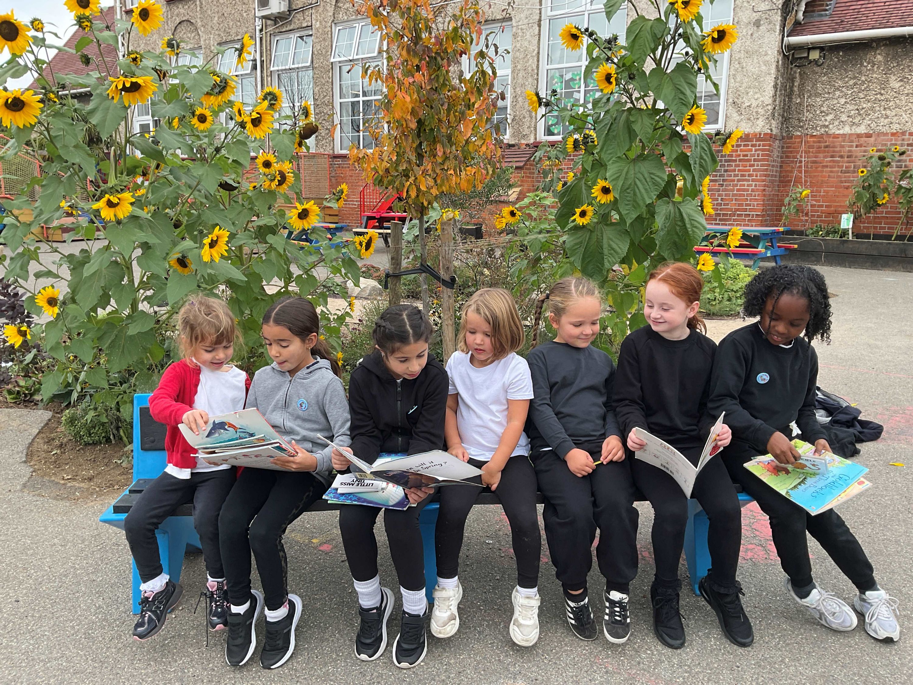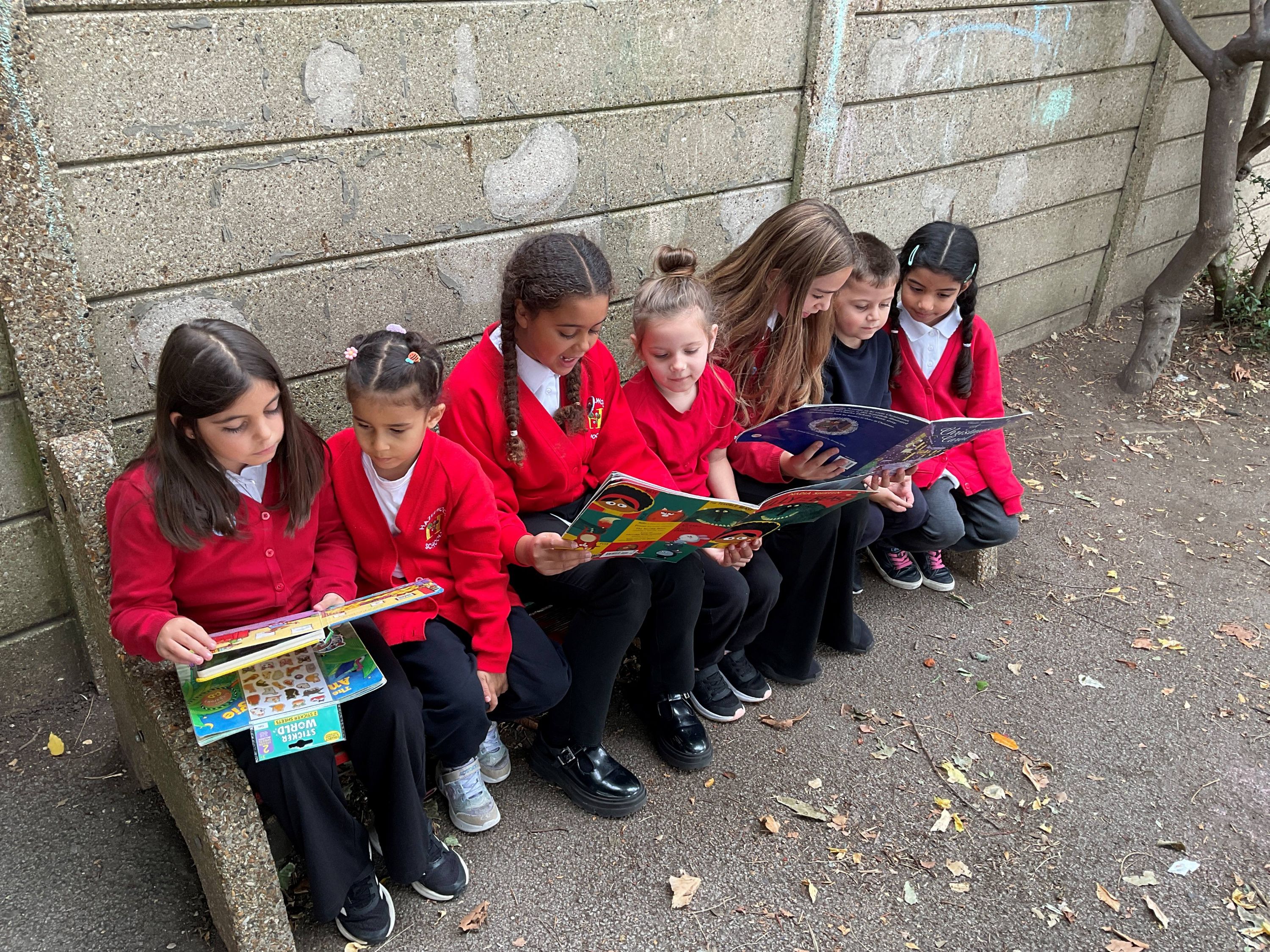 Children in Year 4 and 5 love to support our Year 1 and 2 children every lunchtime with their love of reading. They read books and tell stories to the youngest children in the school, showing all of our values and responsibility by doing so. Children are encouraged to write a job application for the role and take it very seriously indeed!