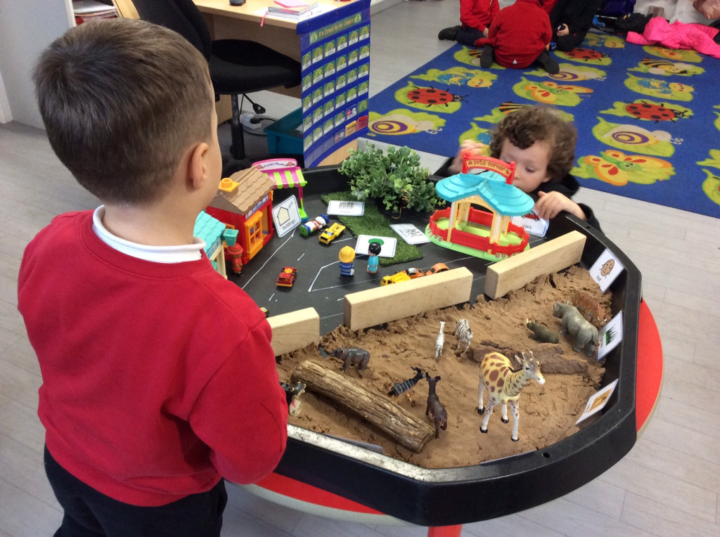 The children in Reception have been listening to a new story this week: “The Three Billy Goats Gruff”. They were fantastic at talking about the good and bad choices the troll made in the story and enjoyed describing the troll using words like: green, grumpy, fat, huge and horrible. Towards the end of the week, as the children became familiar with the story, they used their first story map to help retell the story. In class, the children had an opportunity to use puppets to tell the story independently; mix colours to paint their own goats and build a bridge using wooden blocks and tongs.