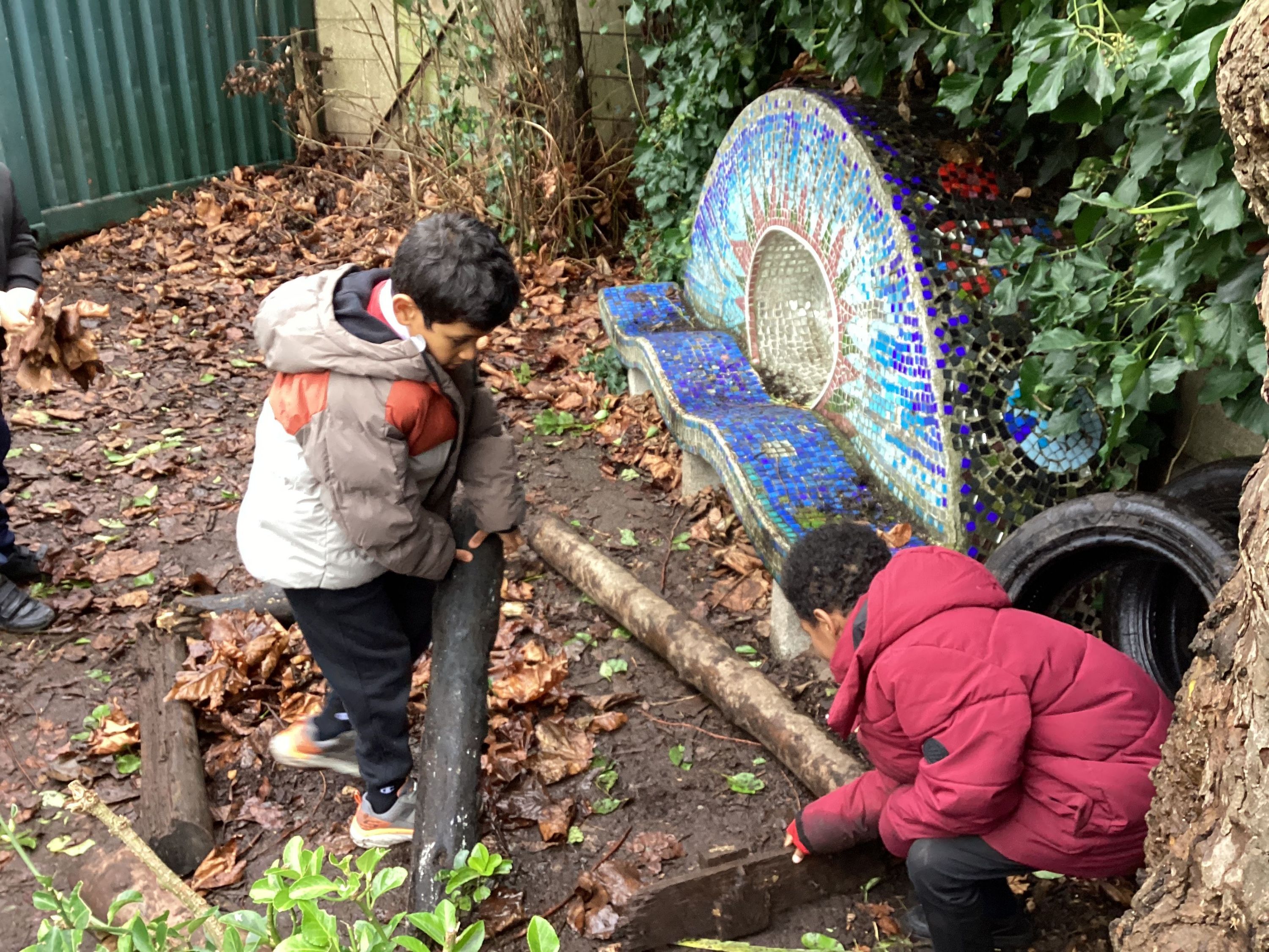 The children then chose from a range of activities, including creating Forest School artwork using charcoal, hunting for mini-beasts and building nature pictures using natural resources found around the garden.