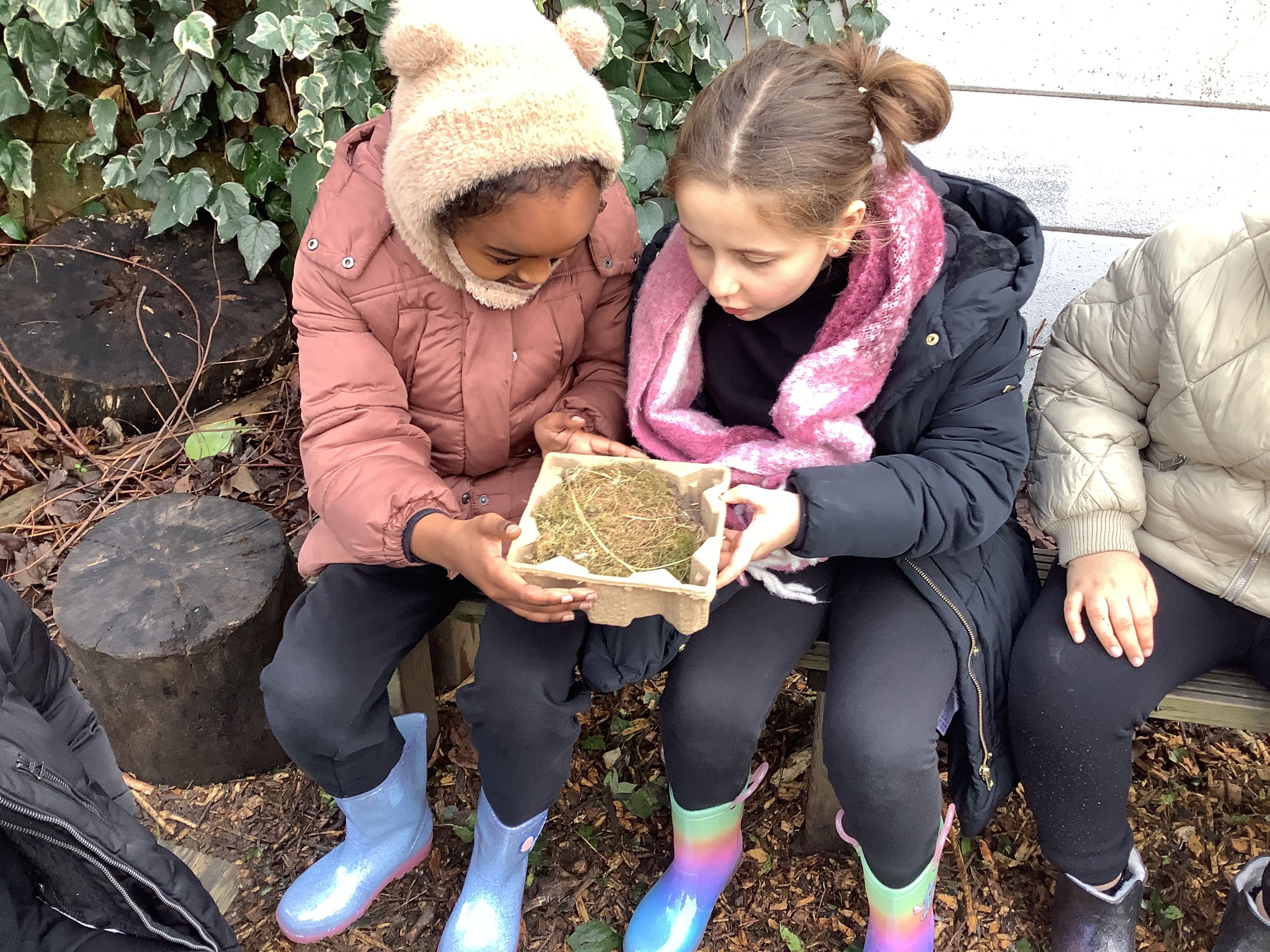 This week, the children had a go at making their own bird shelters. They showed creativity and problem-solving as they selected and arranged materials to construct different shaped structures to sit beneath while bird watching. They showed lots of collaboration, imaginative thinking and an appreciation of how shelters can provide comfort and protection in outdoor environments.