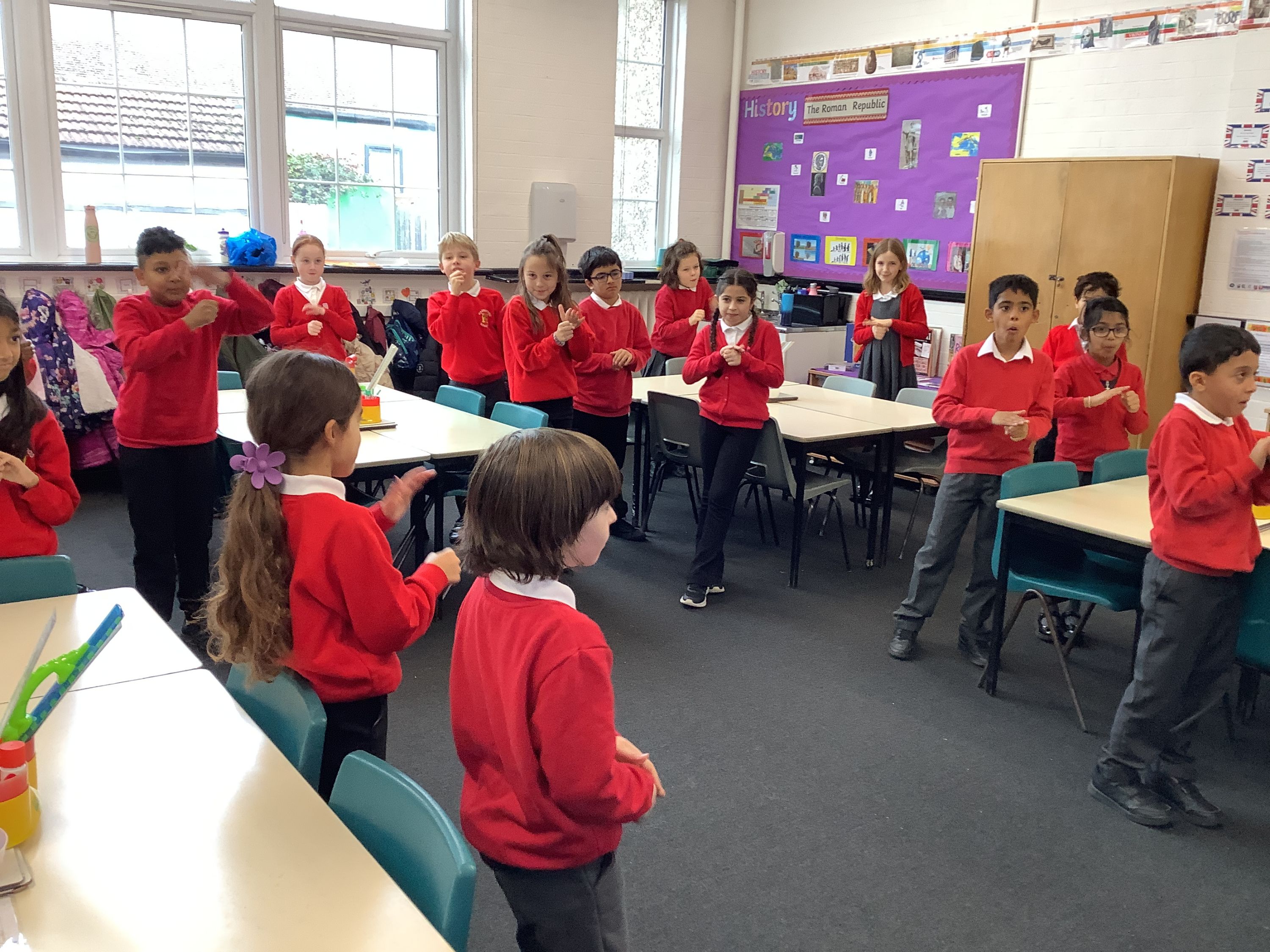 In PSHE, the children began with a challenge to see if they could sit back-to-back with their partner, and both stand up at the same time. They learnt the importance of communication, teamwork, and collaborative working. They then went on to create human function machines. These were all designed to complete a process and it was important to ensure that each person knew what their part of the process was to achieve the overall outcome. They performed their function machines to the rest of the class to see if they could work out what the outcome of each machine was.